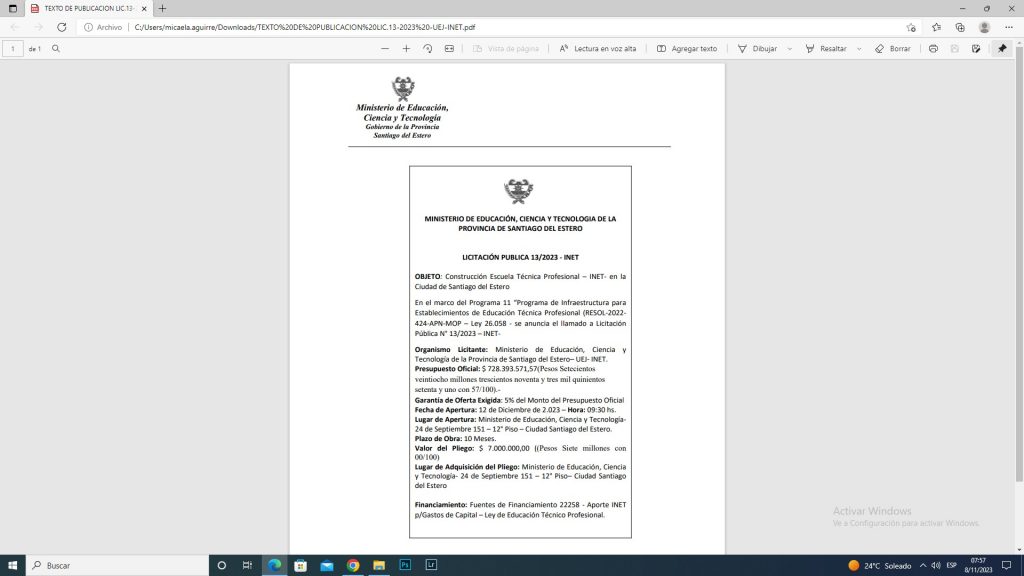 licitacion 132023 Micaela Aguirre2023-11-08T07:59:42-03:00miércoles 8 noviembre, 2023 07:59| Compartir esta noticia FacebookTwitterLinkedIn